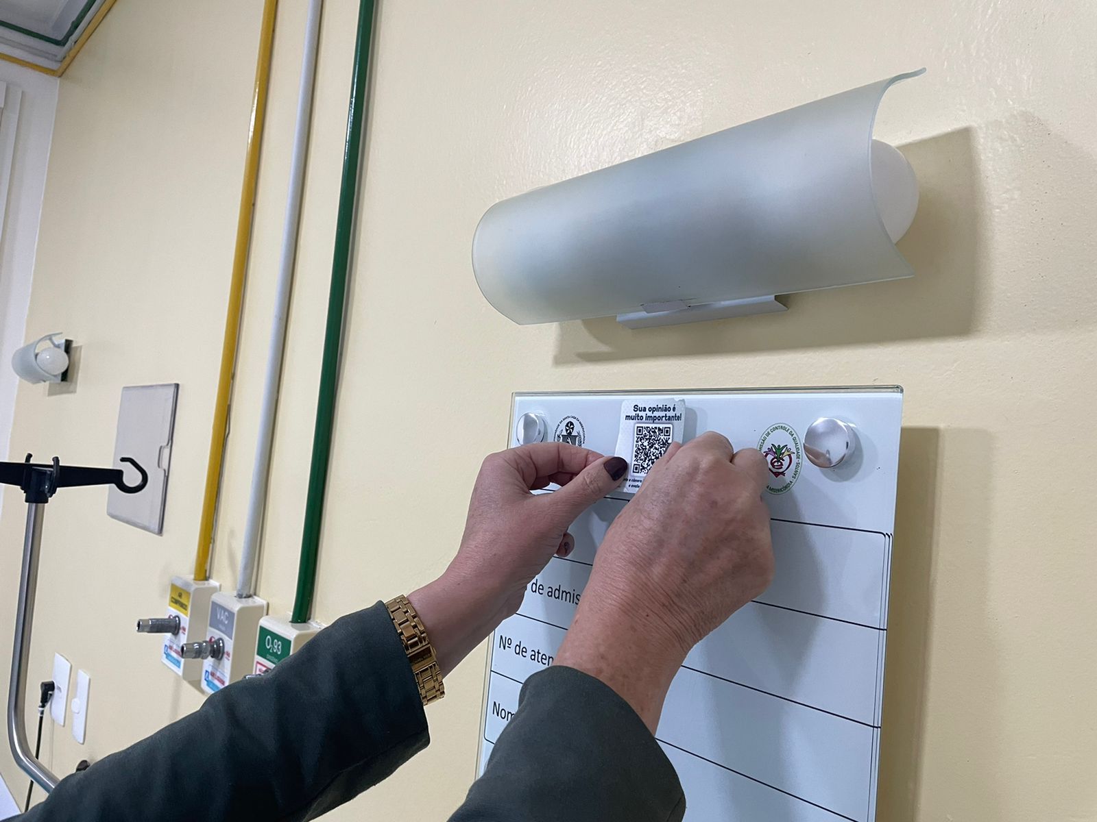 Todas as unidades de internação terão instalados adesivos contendo o código nas placas de identificação beira leito. Basta apontar a câmera do celular para o adesivo, que a pessoa será direcionada para a avaliação do atendimento.