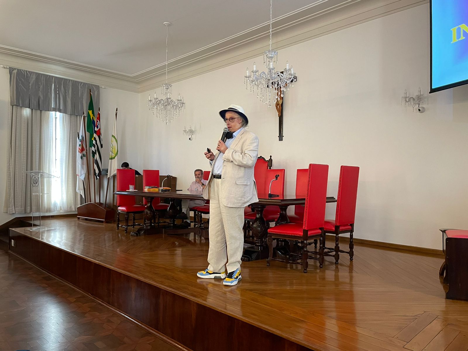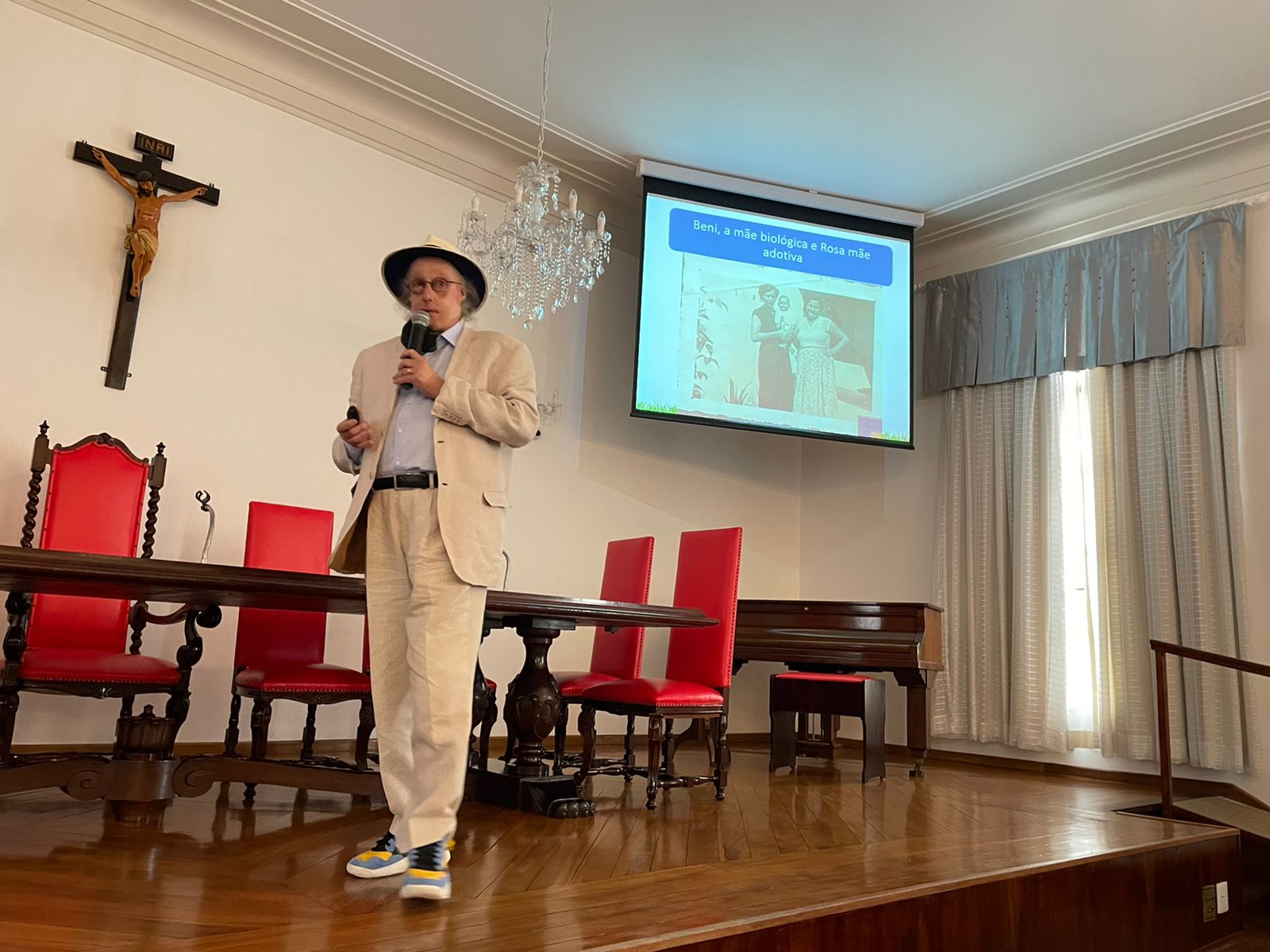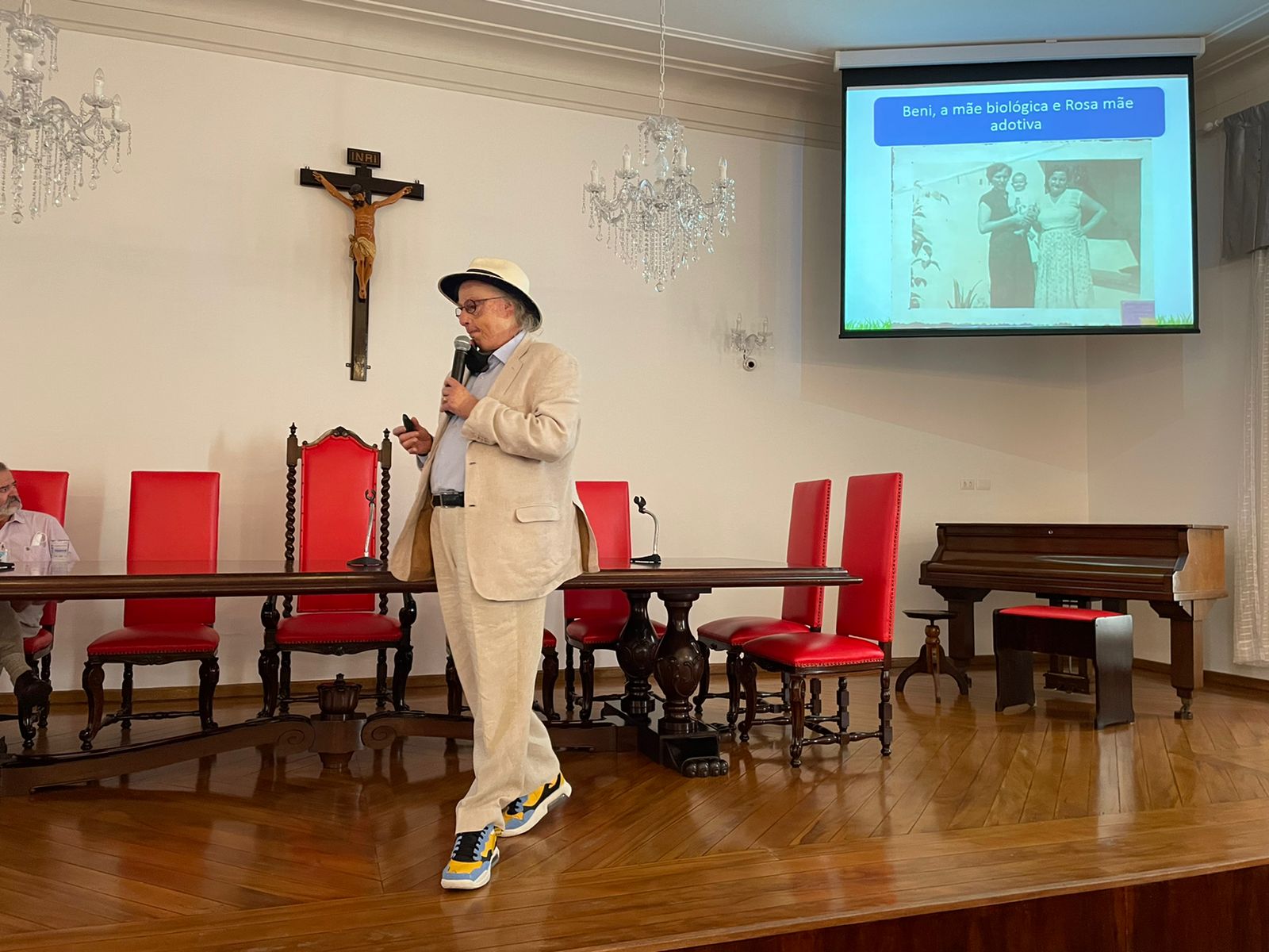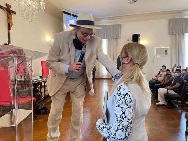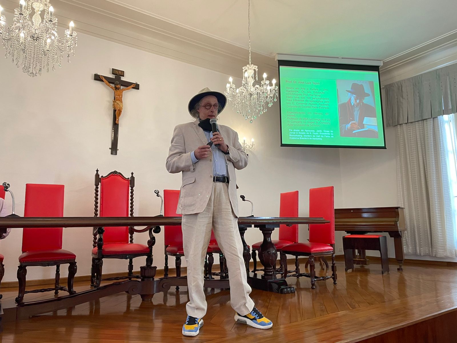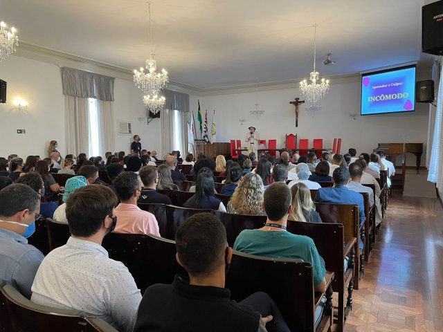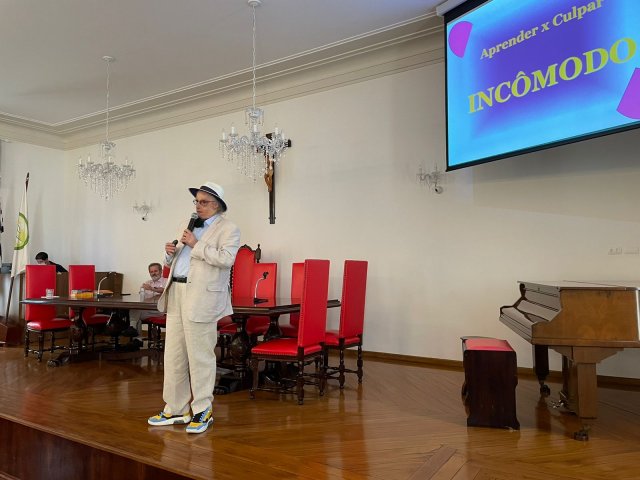José Luiz Tejon é Doutor em Educação, jornalista, publicitário, e professor, mas em sua palestra lembrou como foi o início do aprendizado, quando estava em tratamento na Santa Casa de Santos, por conta das queimaduras, e estudou na antiga escola Nossa Senhora de Lourdes, que era mantida pelo hospital, dedicada às crianças que ficavam internadas por longa permanência.