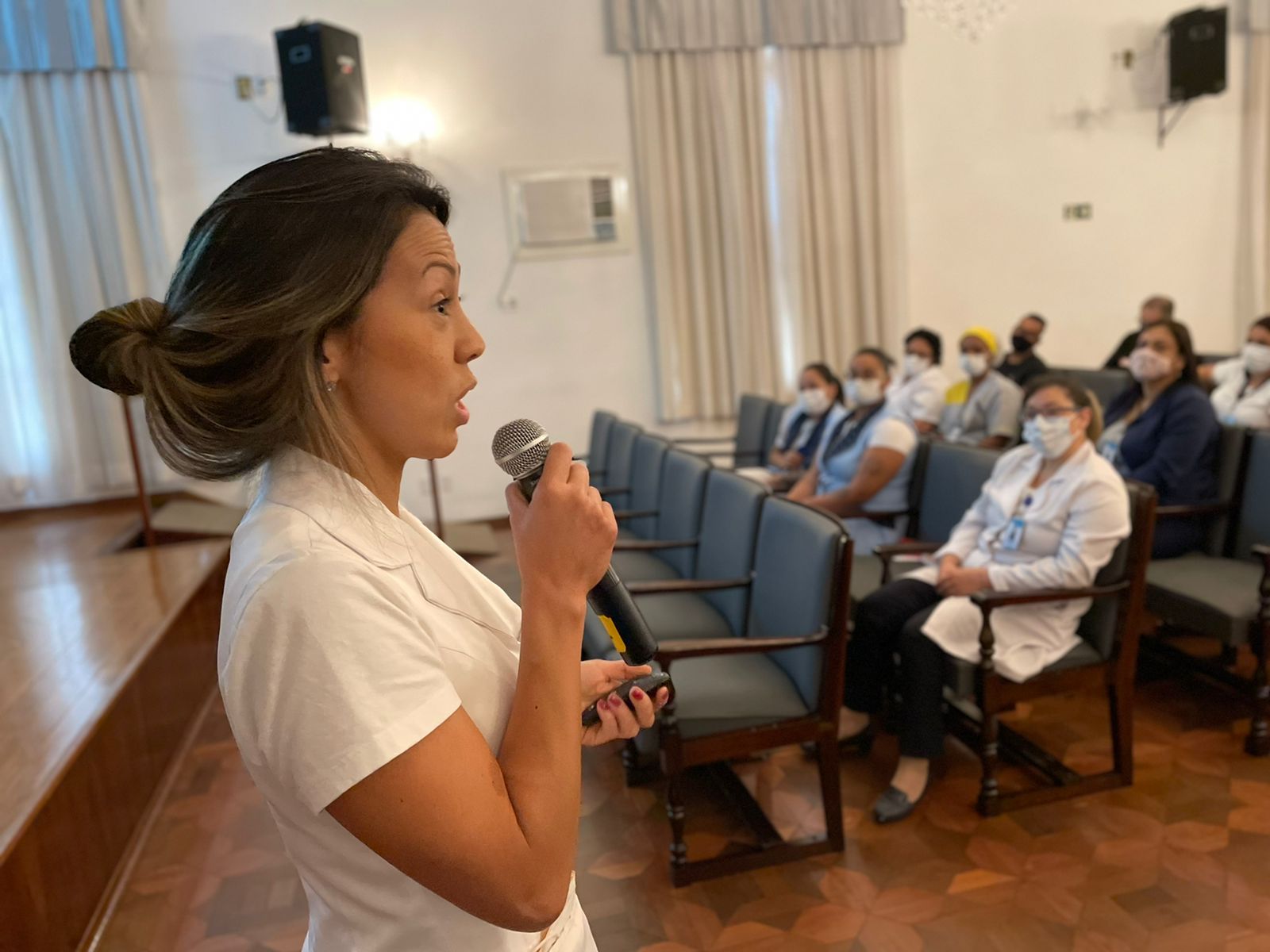 Vale destacar que, na noite de ontem, das 19h às 21h, completando a programação do 2º dia de evento, e para atender os funcionários do noturno, aconteceram também as palestras “Serviço de Controle Hospitalar: O que você não sabia”, com o Enfº Sérgio Félix Cardoso, e “Prevenção de Acidentes de Trabalho e Trajeto”, com o Técnico de Segurança do Trabalho, Flávio Leite, que apresentou o tema novamente para contemplar as equipes que não puderam participar no período da manhã.