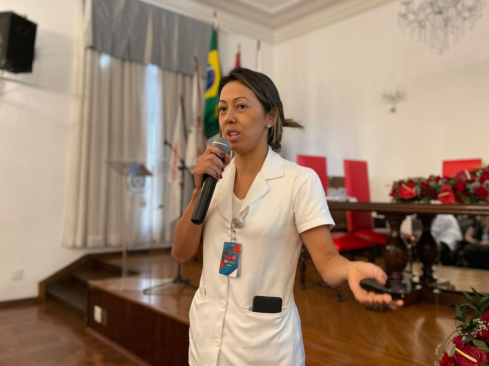 A vice-presidente da CIPA, Enfª. Kelly Cristine, fez um agradecimento especial ao grupo da CIPA por todo o envolvimento e dedicação na organização do evento, e lembrou o quanto cada um é importante para o outro, que todos as atividades e áreas se complementam. “Um depende do outro, e nossa tarefa envolve vidas. Sem o conteúdo humano, não se faz milagre”, enfatizou Kelly Cristine.